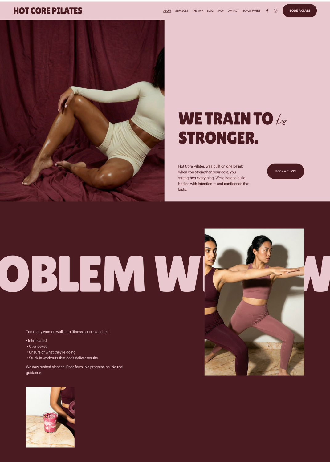 Introducing the Pink Red Squarespace website template, this Squarespace template is bold and playful, perfect for fitness coaches, personal trainers, yoga instructors, pilates instructors, service providers and small business owners who wants to stand out with a modern, bold and unique website.